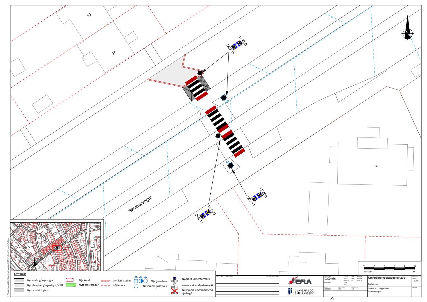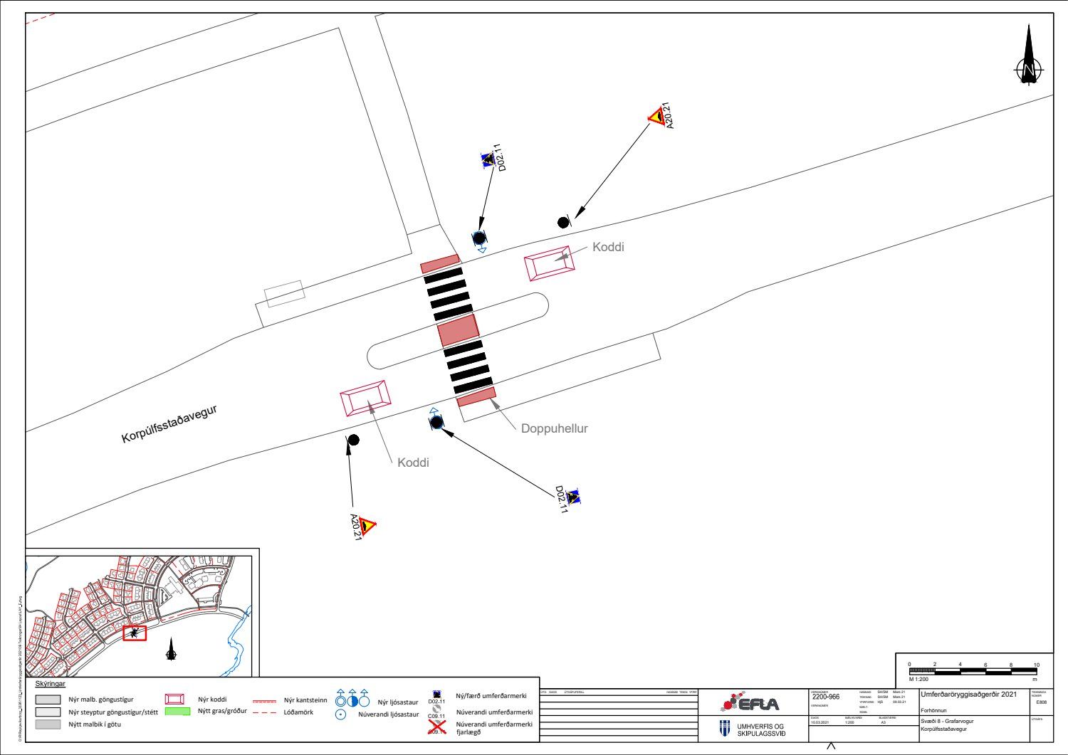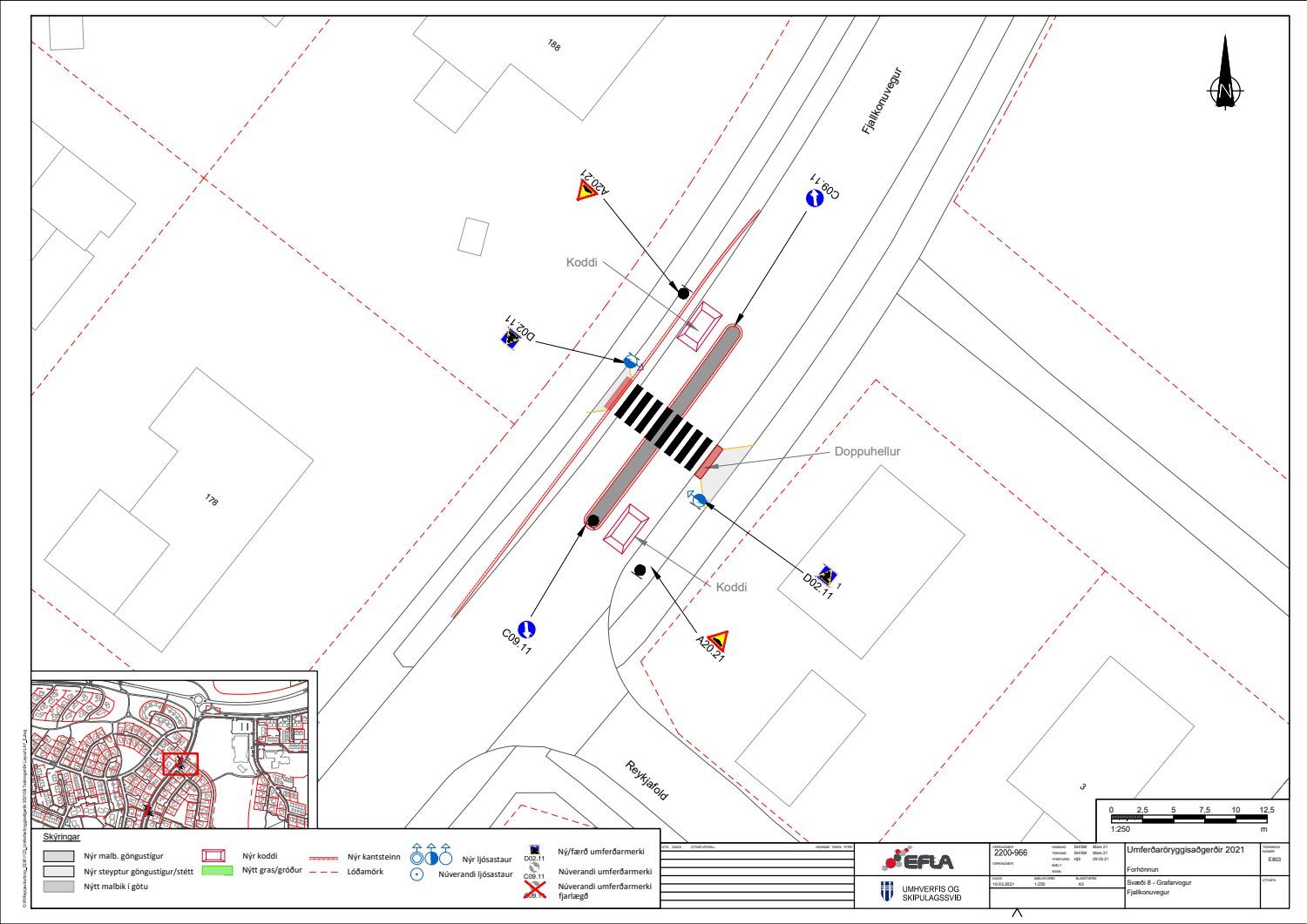 Óskað er heimildar skipulags- og samgönguráð til að halda áfram undirbúningi hönnunar og gerð útboðsgagna fyrir aðgerðirnar með það að markmiði að bjóða þær út til framkvæmda vorið 2021. Aðgerðirnar eru eftirtaldar en teikningar fylgja með tillögunni: a. Ný gangbraut yfir Meistaravelli austan húss nr. 19-23 á upphækkun og með gangbrautarlýsingu. b. Ný gangbraut yfir Hofsvallagötu vestan Ásvallagötu og hraðadempandi aðgerðir til samræmis við gatnamót við Sólvallagötu. Bætt lýsing á gatnamótum Hofsvallagötu og Sólvallagötu og Hofsvallagötu og Ásvallagötu. c. Ný gangbraut yfir Bríetartún austan Þórunnartúns á upphækkun og með gangbrautarlýsingu. Til að tryggja sýn að og frá gönguþverun er gert ráð fyrir að fella niður tvö bílastæði sunnan götunnar. Norðan götunnar er gert ráð fyrir að tveimur bílastæðum næst gönguþveruninni sé hækkað upp í hæð gangstéttar og breytt í stæði stæði fyrir hreyfihamlaða (kemur ekki fram á teikningunni). d. Ný gangbraut yfir Nóatún sunnan Sóltúns á upphækkun og með gangbrautarlýsingu. e. Aðgreining bílastæðis á lóð og gönguleiðar að leiksvæði í enda botnlanga Rauðalækjar 19-25. f. Ný gangbraut yfir Engjaveg móts við hús nr. 6 með gangbrautarlýsingu á núverandi upphækkun. Upphækkun vestan innkeyrslu að bílastæði Þróttar. g. Ný gangbraut yfir Skeiðarvog og húsagötu samsíða götunni, móts við hús nr. 97-107 með gangbrautarlýsingu. Ný upphækkun og tenging við gangstétt innan við húsagötu. Til að ná að tengja gönguþverunina við gangstétt innan húsagötu þarf að fella niður tvö bílastæði við húsagötuna. h. Ný gangbraut yfir Háaleitisbraut sunnan Hvassaleitis með gangbrautarlýsingu. Hraðadempandi aðgerðir í aðdraganda gönguþverunarinnar og þrenging götunnar niður í eina akrein í hvora átt gegnum gatnamótin við Hvassaleiti. i. Ný upphækkun og núverandi gangbraut yfir Vesturhóla vestan Fýlshóla. Gangbrautarlýsing og lagfæringar á gangstétt. j. Grindverk (fallvörn) með fram stíg við Höfðabakka og rampa að Vesturlandsvegi við hleðslu að lóð Húsgagnahallarinnar. k. Ný upphækkun yfir Lokinhamra norðan við aðkomu frá Gullinbrú við núverandi gangbraut. Gangbrautarlýsing og lagfæringar á gönguleið að undirgöngum. l. Ný gangbraut yfir Fjallkonuveg norðan Reykjafoldar með gangbrautarlýsingu, miðeyju og hraðadempandi aðgerðum. m. Ný gangbraut yfir Fjallkonuveg miðja vegu milli Reykjafoldar og Logafoldar með gangbrautarlýsingu, miðeyju og hraðadempandi aðgerðum. n. Ný gangbraut yfir Borgaveg austan Strandvegar, austar. Gönguþverun yfir Strandveg, norðan Borgavegar færð. Gangbrautarlýsing á báðum gönguþverunum, hraðadempandi aðgerðir og stígar aðlagaðir að nýjum staðsetningum þeirra. Hægribeygjuframhjáhlaup á gatnamótum afnumin til að stuðla að hægari umferð og bættu öryggi akandi vegfarenda. o. Ný gangbraut yfir Borgaveg vestan og austan biðstöðvar strætó í Spöng með gangbrautarlýsingu, hraðadempandi aðgerðum. p. Ný gangbraut yfir Korpúlfsstaðaveg við biðstöð strætó milli Bakkastaða og Brúnastaða, með gangbrautarlýsingu og hraðadempandi aðgerðum. q. Hraðadempandi aðgerðir við gönguþverun yfir Þúsöld norðan Vínlandsleiðar og bætt lýsing gatnamóta. r. Ný gönguþverun yfir Þúsöld í tengslum við biðstöð strætó norðan Guðríðarstígs með gangbrautarlýsingu og hraðadempandi aðgerðum. Stígar aðlagaðir að staðsetningu gönguþverunar. s. Ný gönguþverun og upphækkun yfir Stjörnugróf sunnan Undralands (teikning ekki tilbúin). Til viðbótar við ofangreindaraðgerðir sem ekki hafa verið kynntar áður er ráðgert að merkja gangbraut yfir Sogaveg móts við göngubrú að Skeifunni en hún var samþykkt á fundi skipulags- og samgönguráðs 2. desember 2020. Áætlaður kostnaður vegna aðgerðanna er 140 millj.kr.