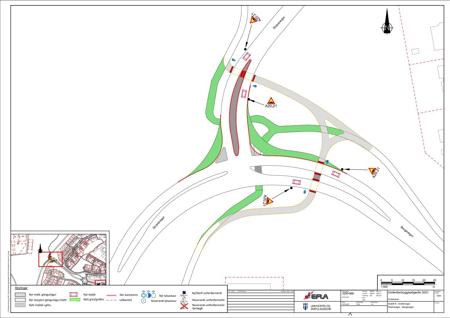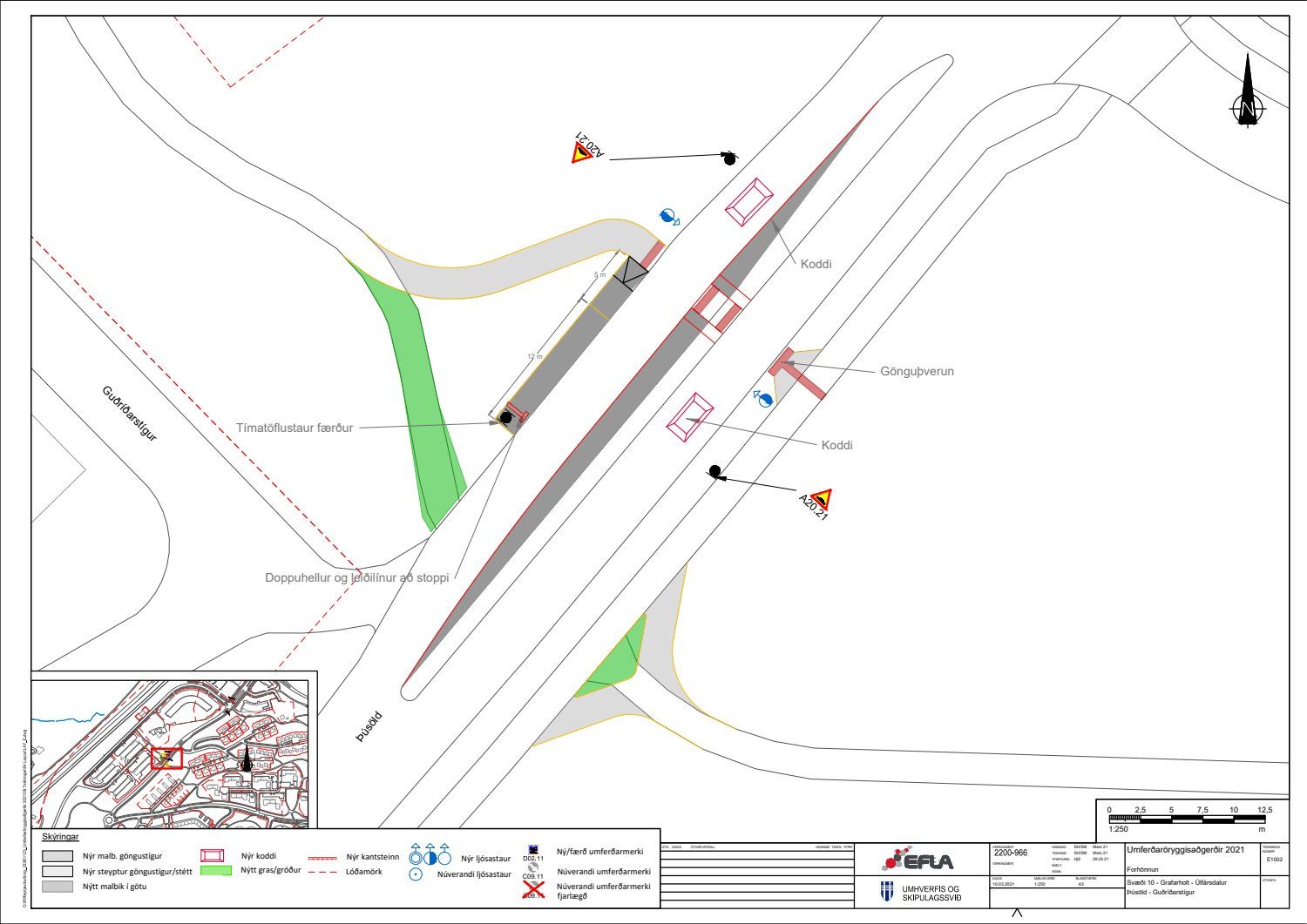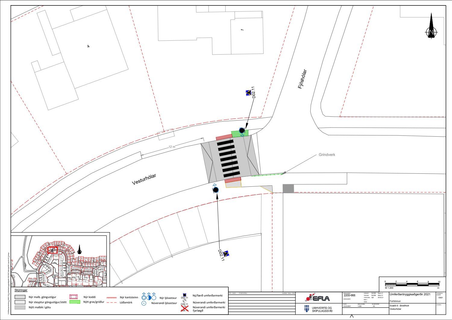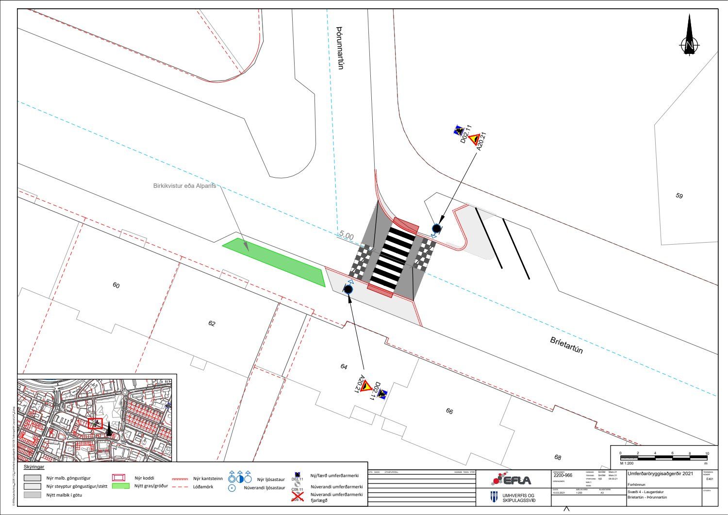 Óskað er heimildar skipulags- og samgönguráð til að halda áfram undirbúningi hönnunar og gerð útboðsgagna fyrir aðgerðirnar með það að markmiði að bjóða þær út til framkvæmda vorið 2021. Aðgerðirnar eru eftirtaldar en teikningar fylgja með tillögunni: a. Ný gangbraut yfir Meistaravelli austan húss nr. 19-23 á upphækkun og með gangbrautarlýsingu. b. Ný gangbraut yfir Hofsvallagötu vestan Ásvallagötu og hraðadempandi aðgerðir til samræmis við gatnamót við Sólvallagötu. Bætt lýsing á gatnamótum Hofsvallagötu og Sólvallagötu og Hofsvallagötu og Ásvallagötu. c. Ný gangbraut yfir Bríetartún austan Þórunnartúns á upphækkun og með gangbrautarlýsingu. Til að tryggja sýn að og frá gönguþverun er gert ráð fyrir að fella niður tvö bílastæði sunnan götunnar. Norðan götunnar er gert ráð fyrir að tveimur bílastæðum næst gönguþveruninni sé hækkað upp í hæð gangstéttar og breytt í stæði stæði fyrir hreyfihamlaða (kemur ekki fram á teikningunni). d. Ný gangbraut yfir Nóatún sunnan Sóltúns á upphækkun og með gangbrautarlýsingu. e. Aðgreining bílastæðis á lóð og gönguleiðar að leiksvæði í enda botnlanga Rauðalækjar 19-25. f. Ný gangbraut yfir Engjaveg móts við hús nr. 6 með gangbrautarlýsingu á núverandi upphækkun. Upphækkun vestan innkeyrslu að bílastæði Þróttar. g. Ný gangbraut yfir Skeiðarvog og húsagötu samsíða götunni, móts við hús nr. 97-107 með gangbrautarlýsingu. Ný upphækkun og tenging við gangstétt innan við húsagötu. Til að ná að tengja gönguþverunina við gangstétt innan húsagötu þarf að fella niður tvö bílastæði við húsagötuna. h. Ný gangbraut yfir Háaleitisbraut sunnan Hvassaleitis með gangbrautarlýsingu. Hraðadempandi aðgerðir í aðdraganda gönguþverunarinnar og þrenging götunnar niður í eina akrein í hvora átt gegnum gatnamótin við Hvassaleiti. i. Ný upphækkun og núverandi gangbraut yfir Vesturhóla vestan Fýlshóla. Gangbrautarlýsing og lagfæringar á gangstétt. j. Grindverk (fallvörn) með fram stíg við Höfðabakka og rampa að Vesturlandsvegi við hleðslu að lóð Húsgagnahallarinnar. k. Ný upphækkun yfir Lokinhamra norðan við aðkomu frá Gullinbrú við núverandi gangbraut. Gangbrautarlýsing og lagfæringar á gönguleið að undirgöngum. l. Ný gangbraut yfir Fjallkonuveg norðan Reykjafoldar með gangbrautarlýsingu, miðeyju og hraðadempandi aðgerðum. m. Ný gangbraut yfir Fjallkonuveg miðja vegu milli Reykjafoldar og Logafoldar með gangbrautarlýsingu, miðeyju og hraðadempandi aðgerðum. n. Ný gangbraut yfir Borgaveg austan Strandvegar, austar. Gönguþverun yfir Strandveg, norðan Borgavegar færð. Gangbrautarlýsing á báðum gönguþverunum, hraðadempandi aðgerðir og stígar aðlagaðir að nýjum staðsetningum þeirra. Hægribeygjuframhjáhlaup á gatnamótum afnumin til að stuðla að hægari umferð og bættu öryggi akandi vegfarenda. o. Ný gangbraut yfir Borgaveg vestan og austan biðstöðvar strætó í Spöng með gangbrautarlýsingu, hraðadempandi aðgerðum. p. Ný gangbraut yfir Korpúlfsstaðaveg við biðstöð strætó milli Bakkastaða og Brúnastaða, með gangbrautarlýsingu og hraðadempandi aðgerðum. q. Hraðadempandi aðgerðir við gönguþverun yfir Þúsöld norðan Vínlandsleiðar og bætt lýsing gatnamóta. r. Ný gönguþverun yfir Þúsöld í tengslum við biðstöð strætó norðan Guðríðarstígs með gangbrautarlýsingu og hraðadempandi aðgerðum. Stígar aðlagaðir að staðsetningu gönguþverunar. s. Ný gönguþverun og upphækkun yfir Stjörnugróf sunnan Undralands (teikning ekki tilbúin). Til viðbótar við ofangreindaraðgerðir sem ekki hafa verið kynntar áður er ráðgert að merkja gangbraut yfir Sogaveg móts við göngubrú að Skeifunni en hún var samþykkt á fundi skipulags- og samgönguráðs 2. desember 2020. Áætlaður kostnaður vegna aðgerðanna er 140 millj.kr.