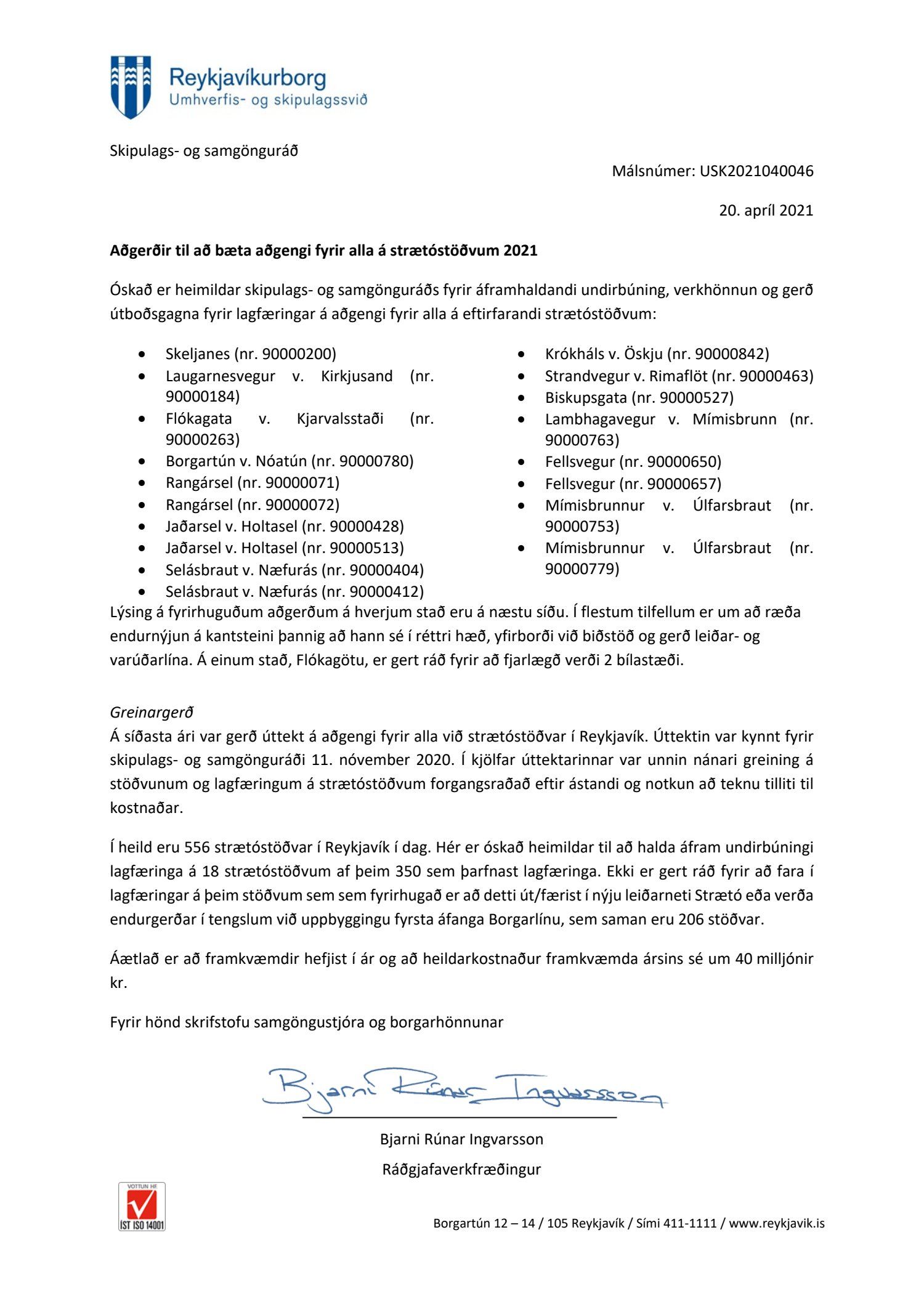 útboðsgagna fyrir lagfæringar á eftirfarandi strætóstöðvum:
